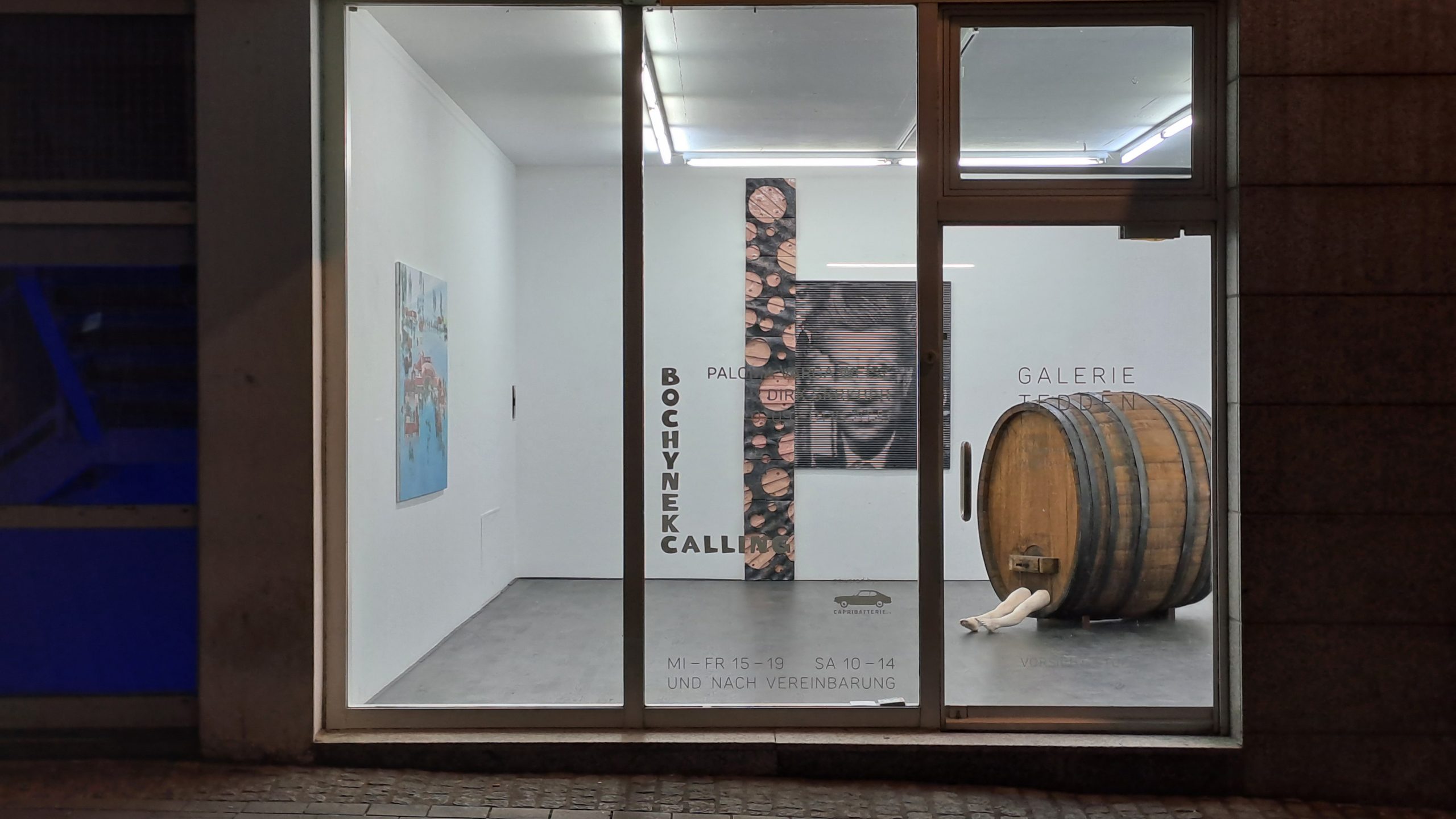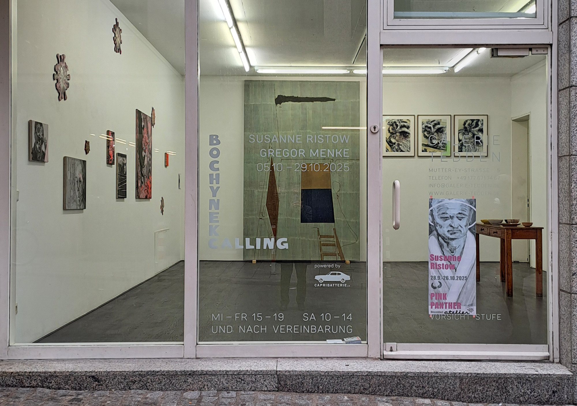 Für seine zweite Ausstellung in diesen Räumen rückseitig der Kunsthalle ist nach fast vierzig Jahren eine Installation von eher kleinformatigen Werken zu erwarten, die das Spektrum Muchas adäquat abbilden. Da wäre zum Beispiel das leitmotivisch immer wieder erscheinende Motiv des Holunderbusches in voller Blüte zu erwähnen, der gerne an Bahndämmen wächst. Begleitet von einem frühen fotografischen Arrangement verschiedener Dampflokomotiven wird es dann auch späte Entwürfe von Hinterglasmalerei geben. Es sei hier nur angedeutet wie komplex die künstlerische Denkweise auch im kleinen Format ist. Mit der Ausstellung von Reinhard Mucha findet das Ausstellungsprojekt BOCHYNEK CALLING seinen Abschluss.
