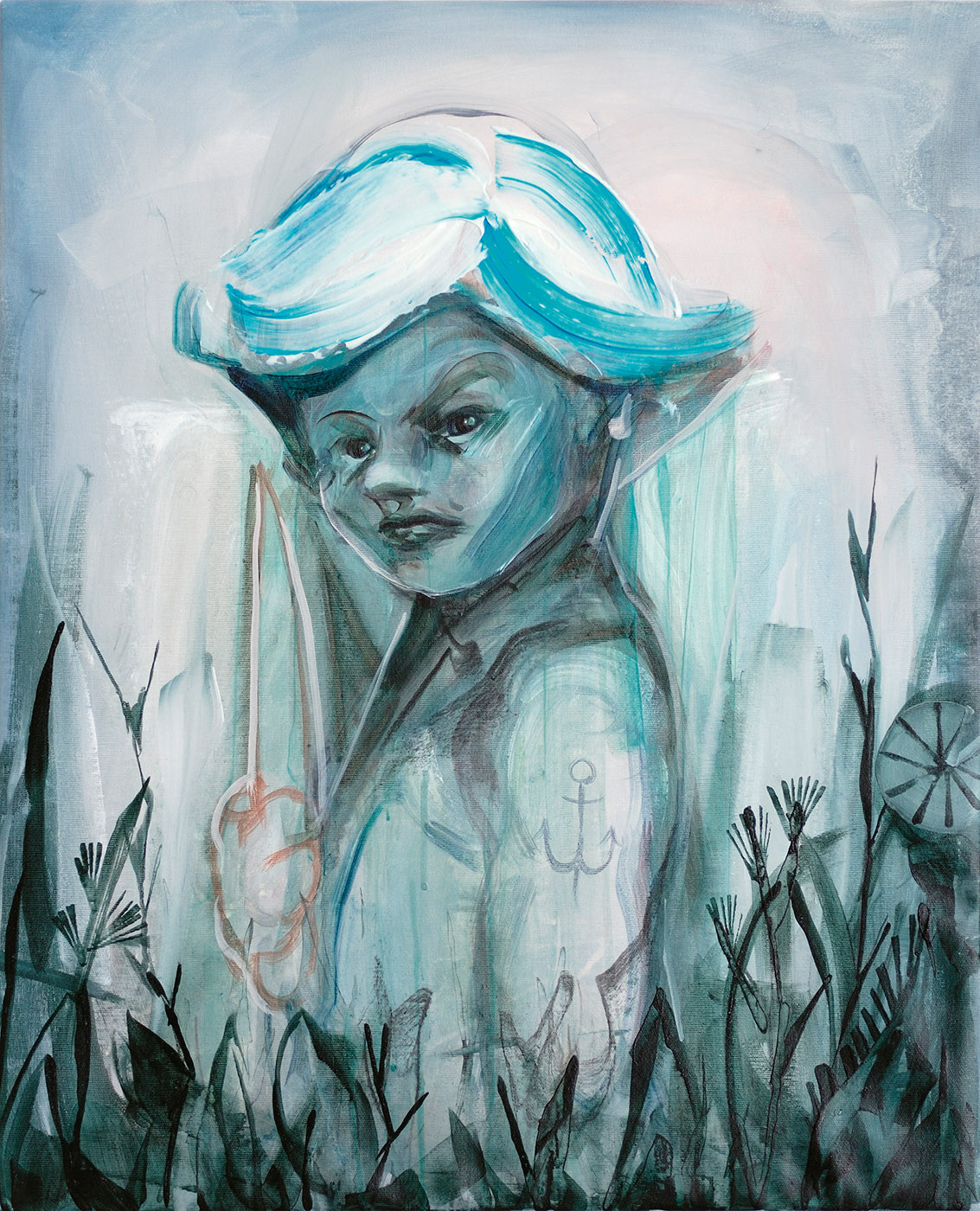 Andrea Bender, Flussnymphe, 2019, Acryl auf Nessel, 75 x 61 cm