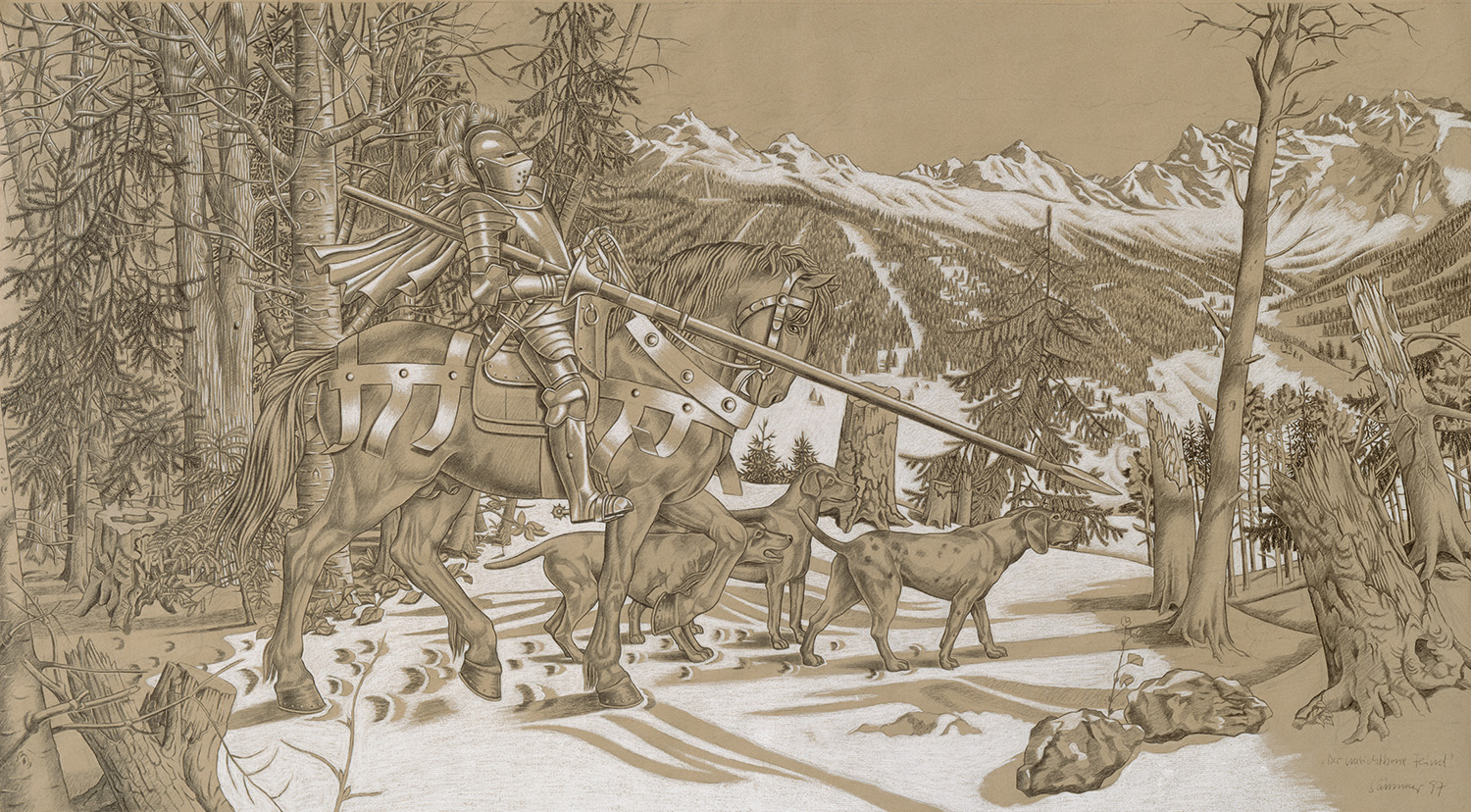 Frank Sämmer, Der unsichtbare Feind, 1997, Kohle, Kreide / Packpapier, 100 × 180 cm