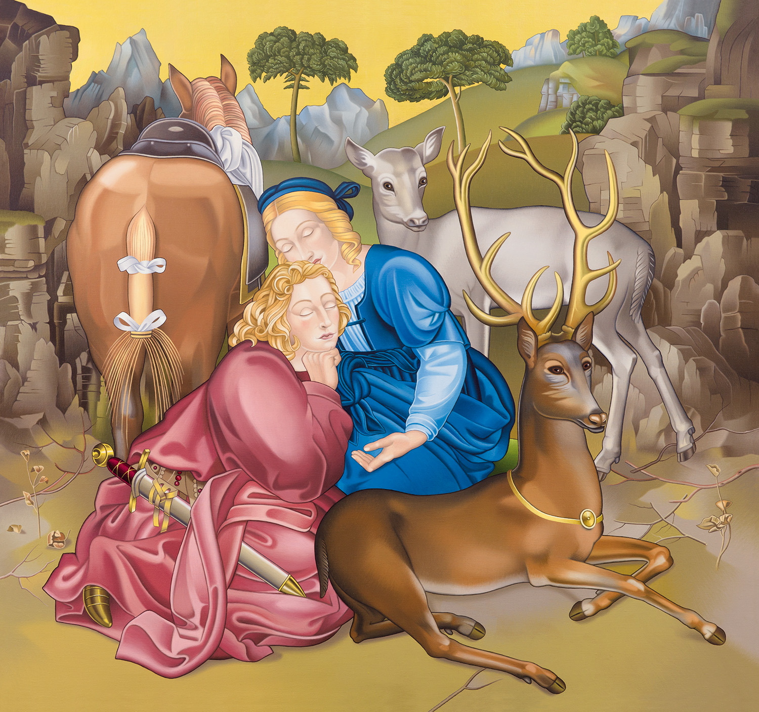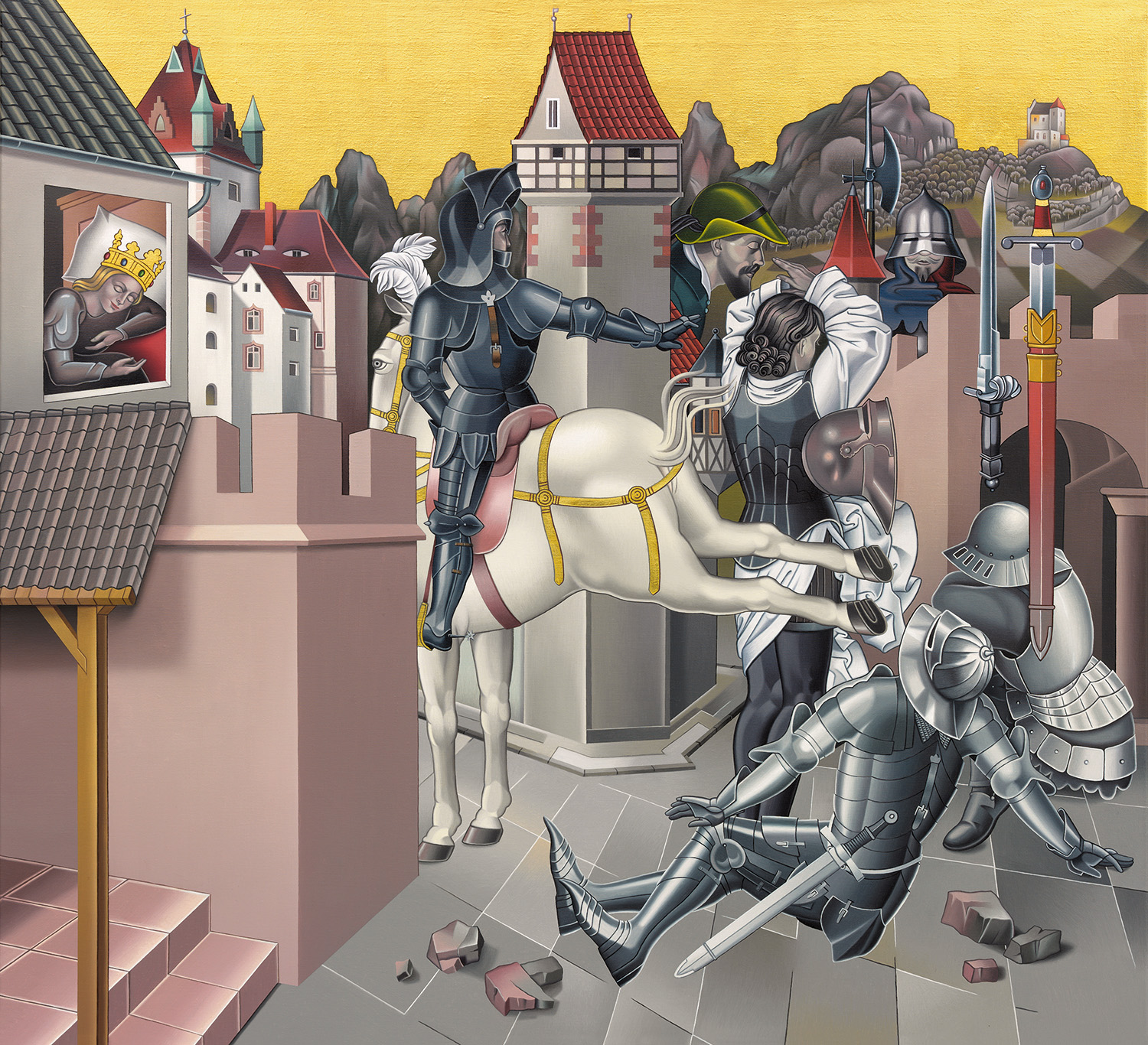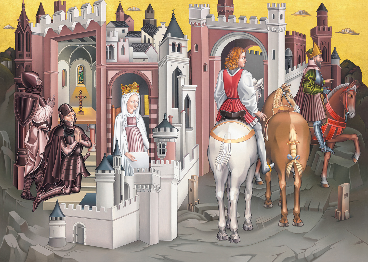 Frank Sämmer, Graf Peters Einzug in Neapel, 2014, Blattgold, Öl / Leinwand, 100 × 140 cm (Privatsammlung)