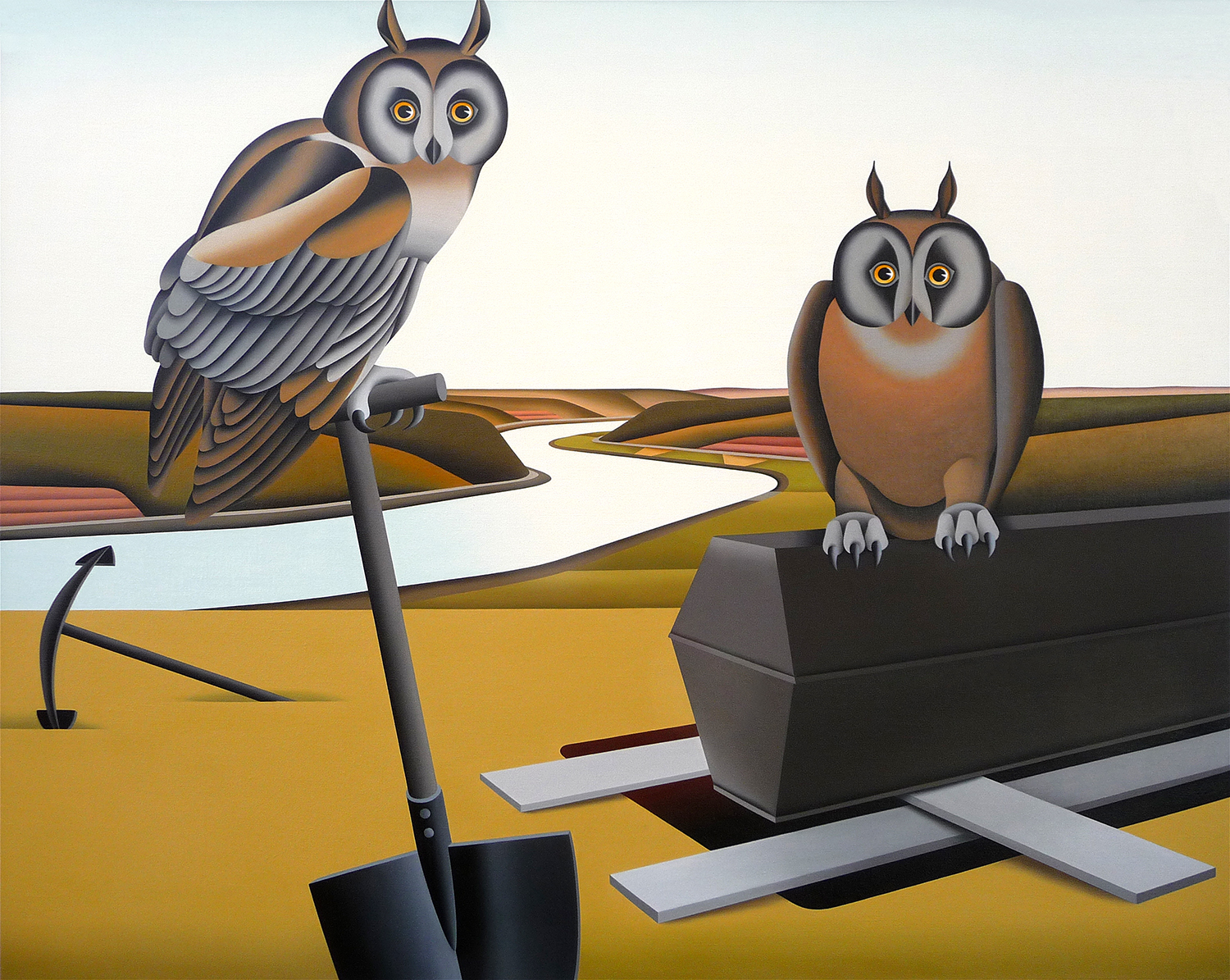 Jan Schüler, Über die Geburt, den Tod und das Leben dazwischen. Erinnerung an Caspar David Friedrich: Eulen am Grab, 2015, Öl auf Leinen, 120 x 150 cm (Diptychon, rechter Flügel)