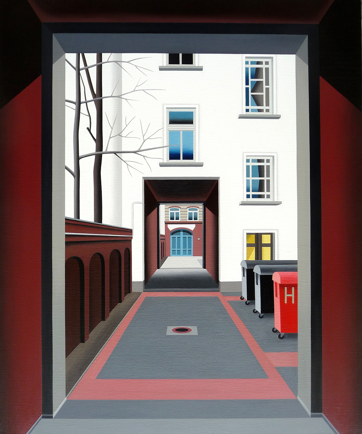 Jan Schüler, Berlin: Hinterhof Kulmer Straße 20a, 2018, Öl auf Leinen, 120 x 100 cm