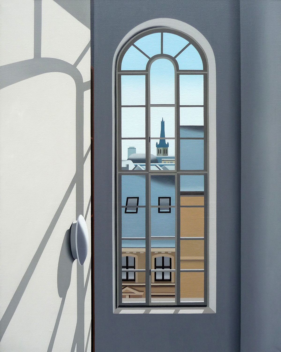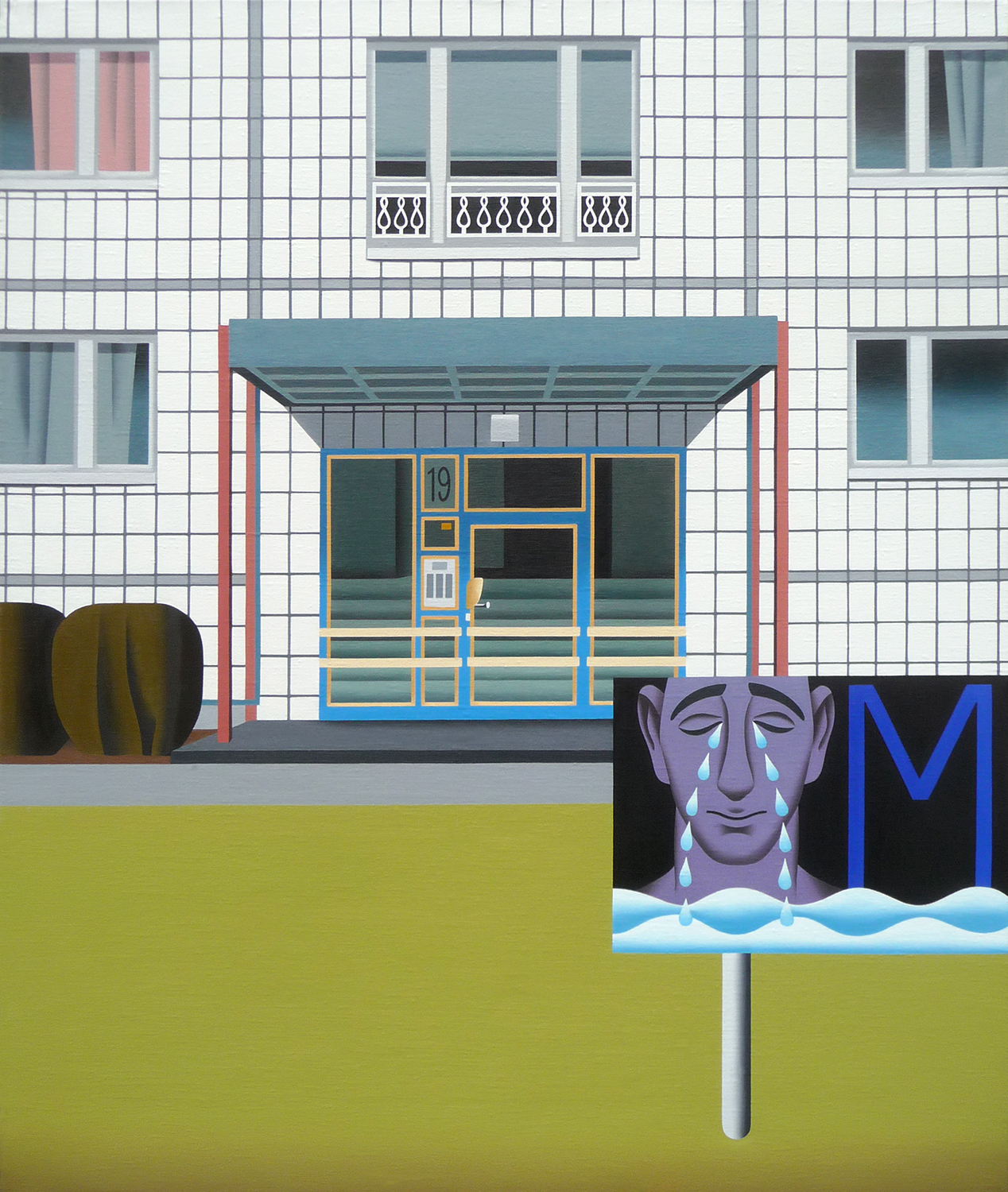Jan Schüler, Berlin: Hauseingang an der Karl-Marx-Allee, 2018, Öl auf Leinen, 120 x 100