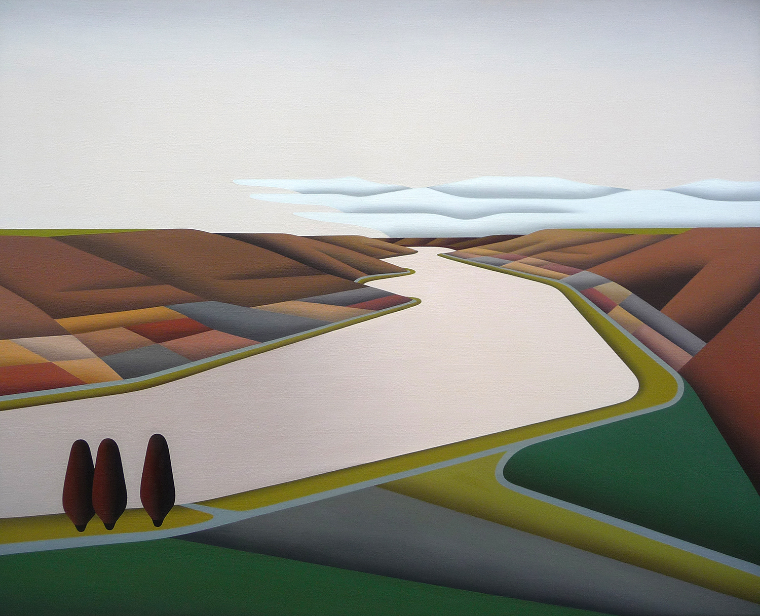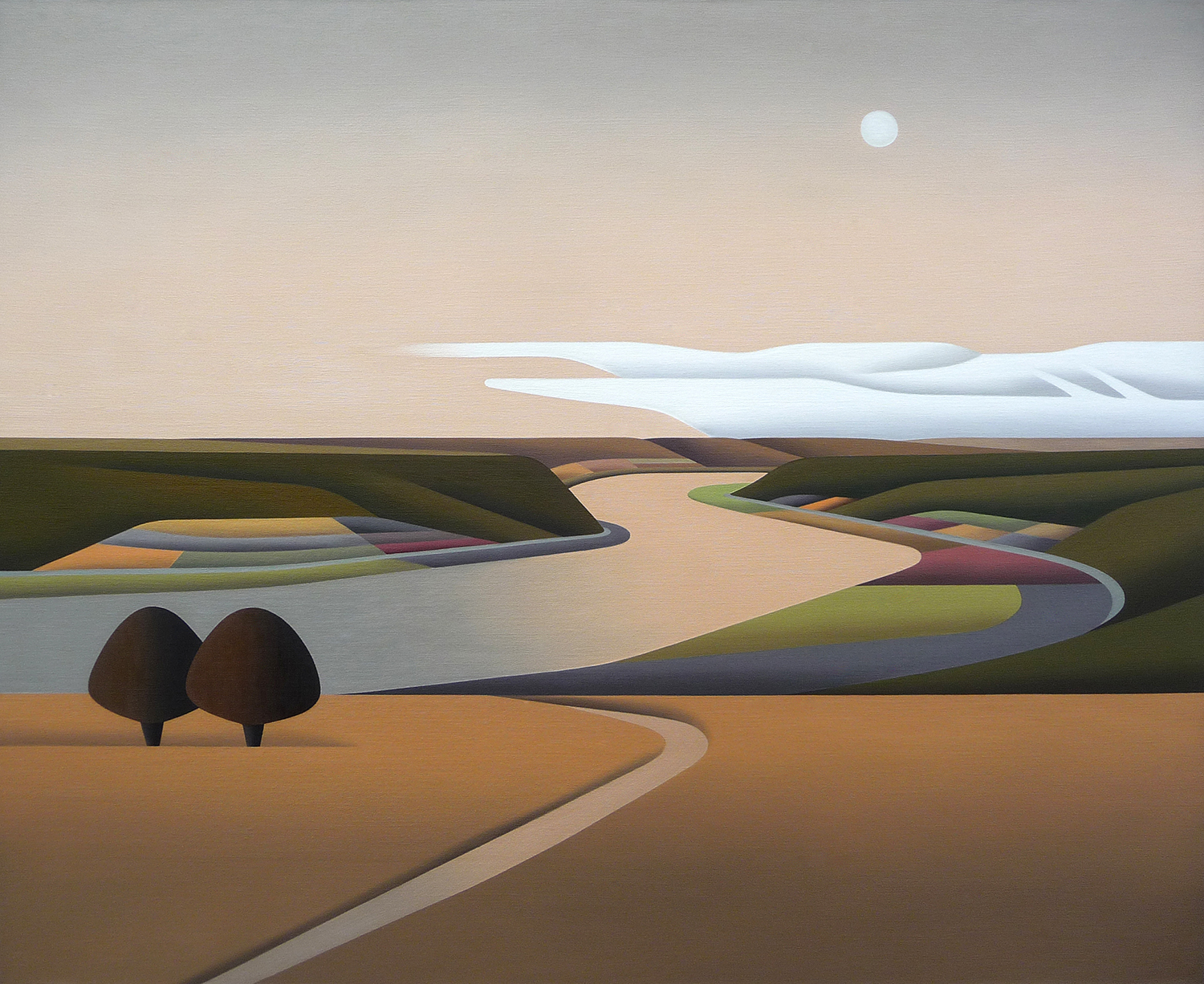 Jan Schüler, Herbstabend am Rhein, 2019, Öl auf Leinen, 90 x 110 cm