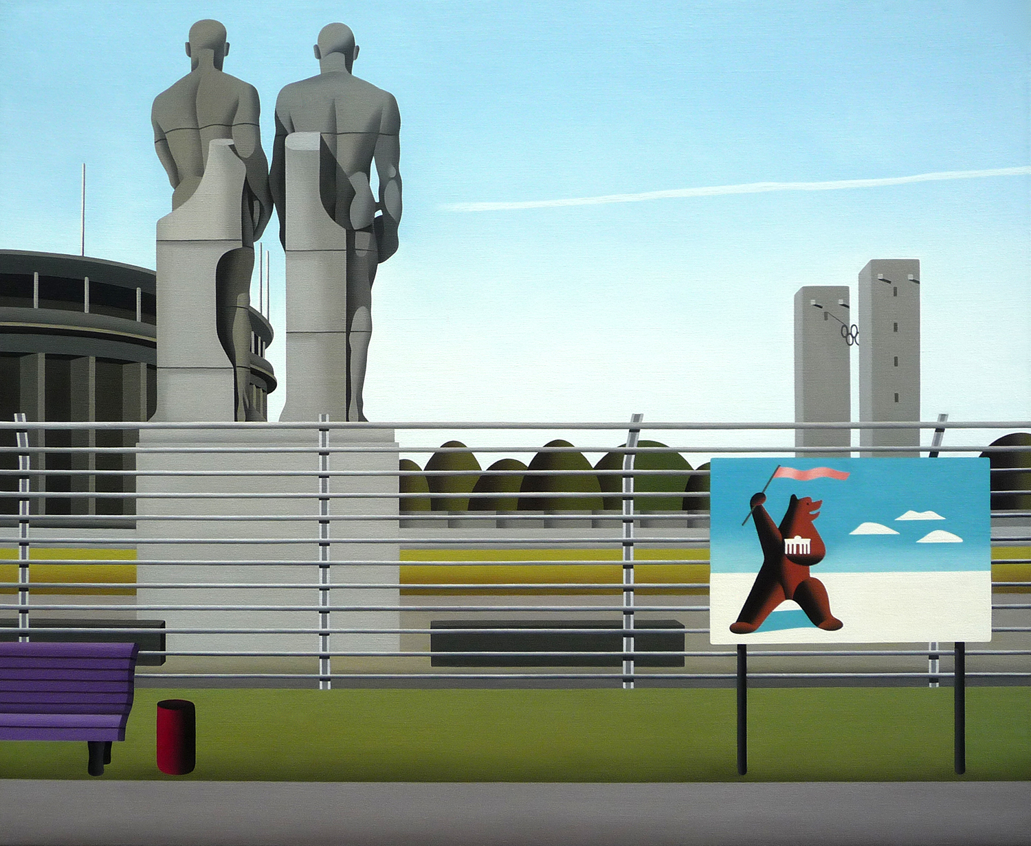 Jan Schüler, Berlin: Abend am Olympiastadion, 2019, Öl auf Leinen, 100 x 120 cm