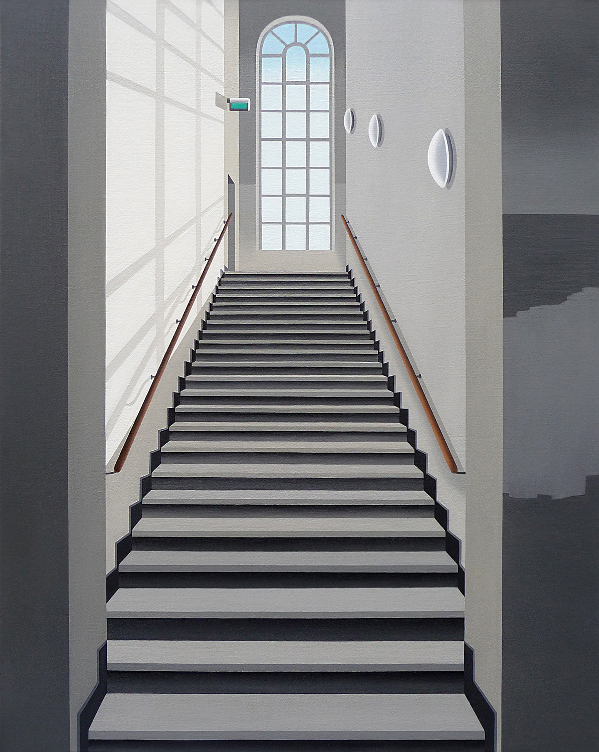 Jan Schüler, Düsseldorf: Aufgang Kunstakademie, 2021, Öl auf Leinen, 100 x 80 cm