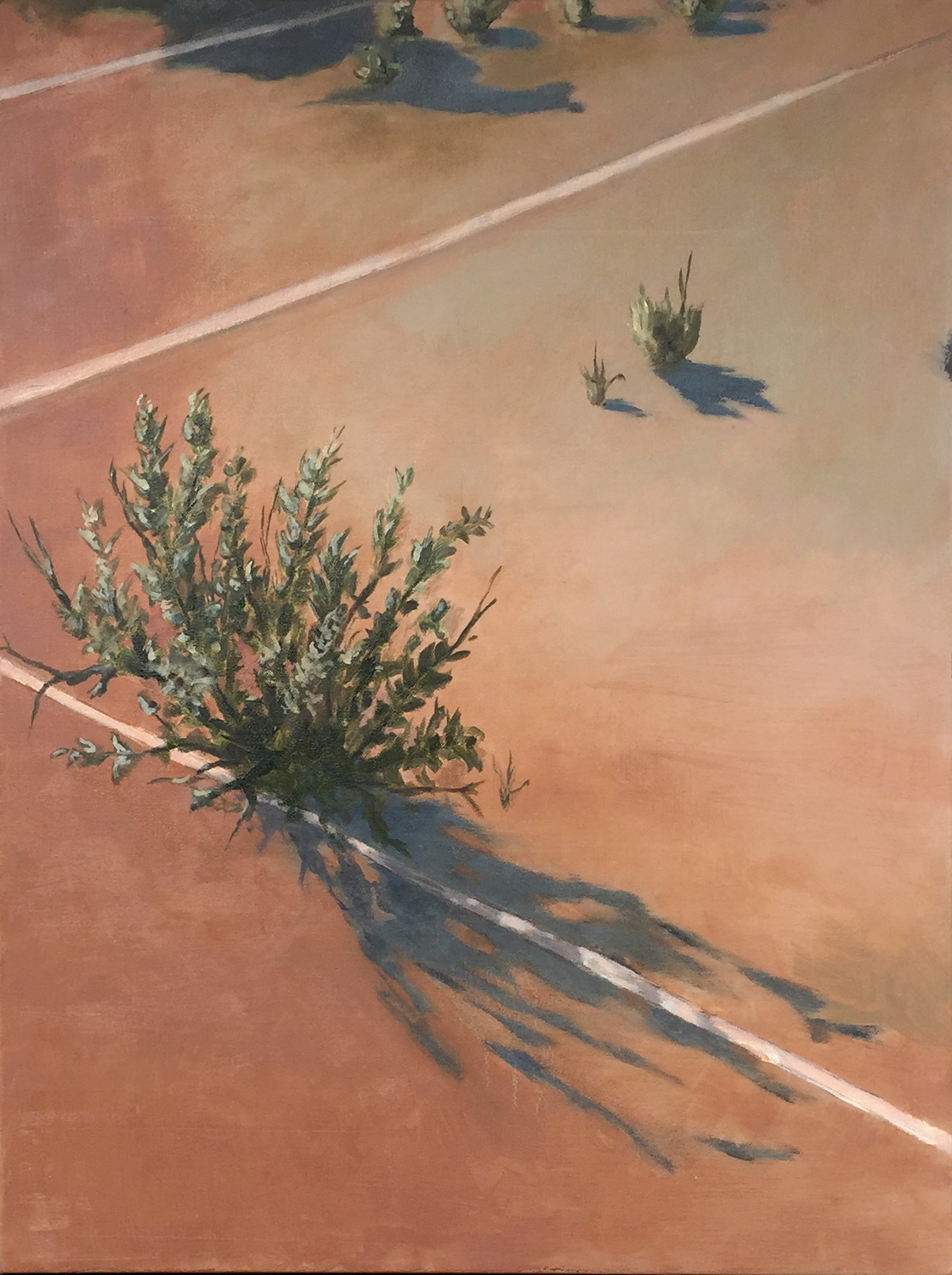 Pflanze auf verlassenem Tennisplatz, 2022, 80 x 60 cm, Ölfarbe auf Leinwand