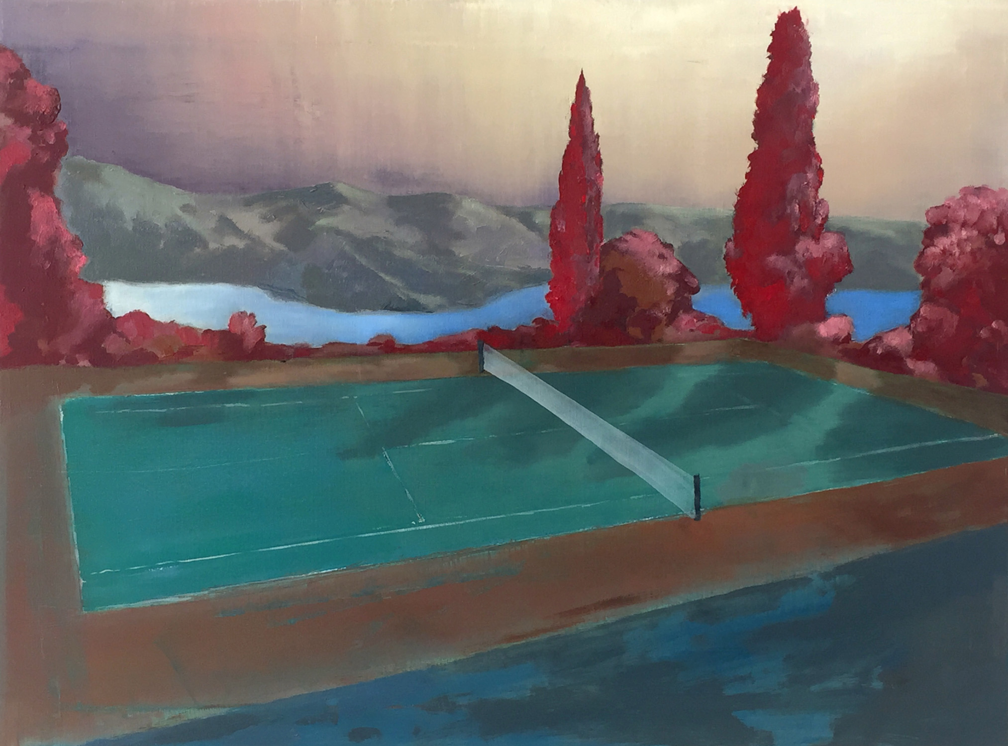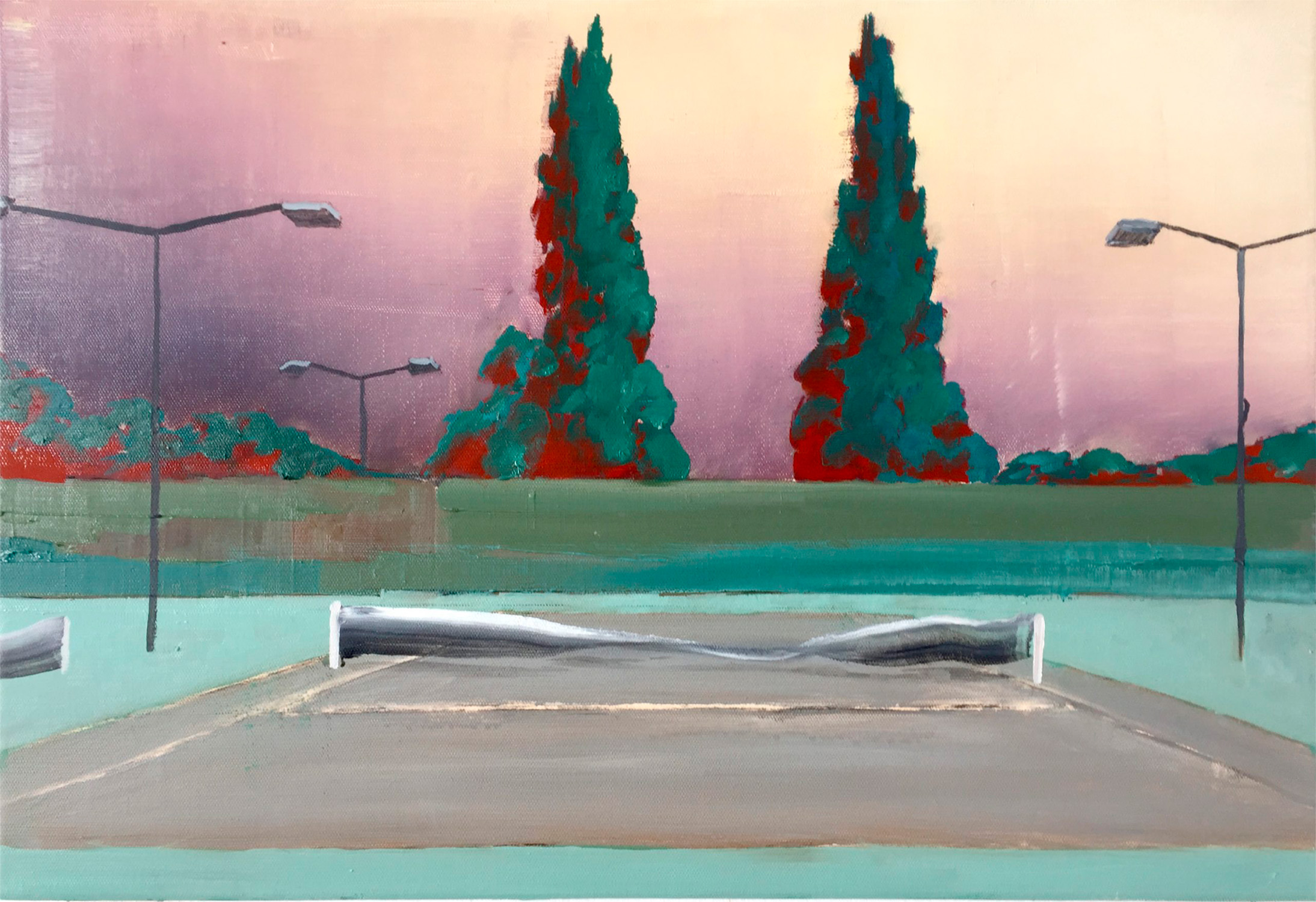 Gesperrter Tennisplatz, 2021, 60 x 81 cm, Ölfarbe auf Leinwand