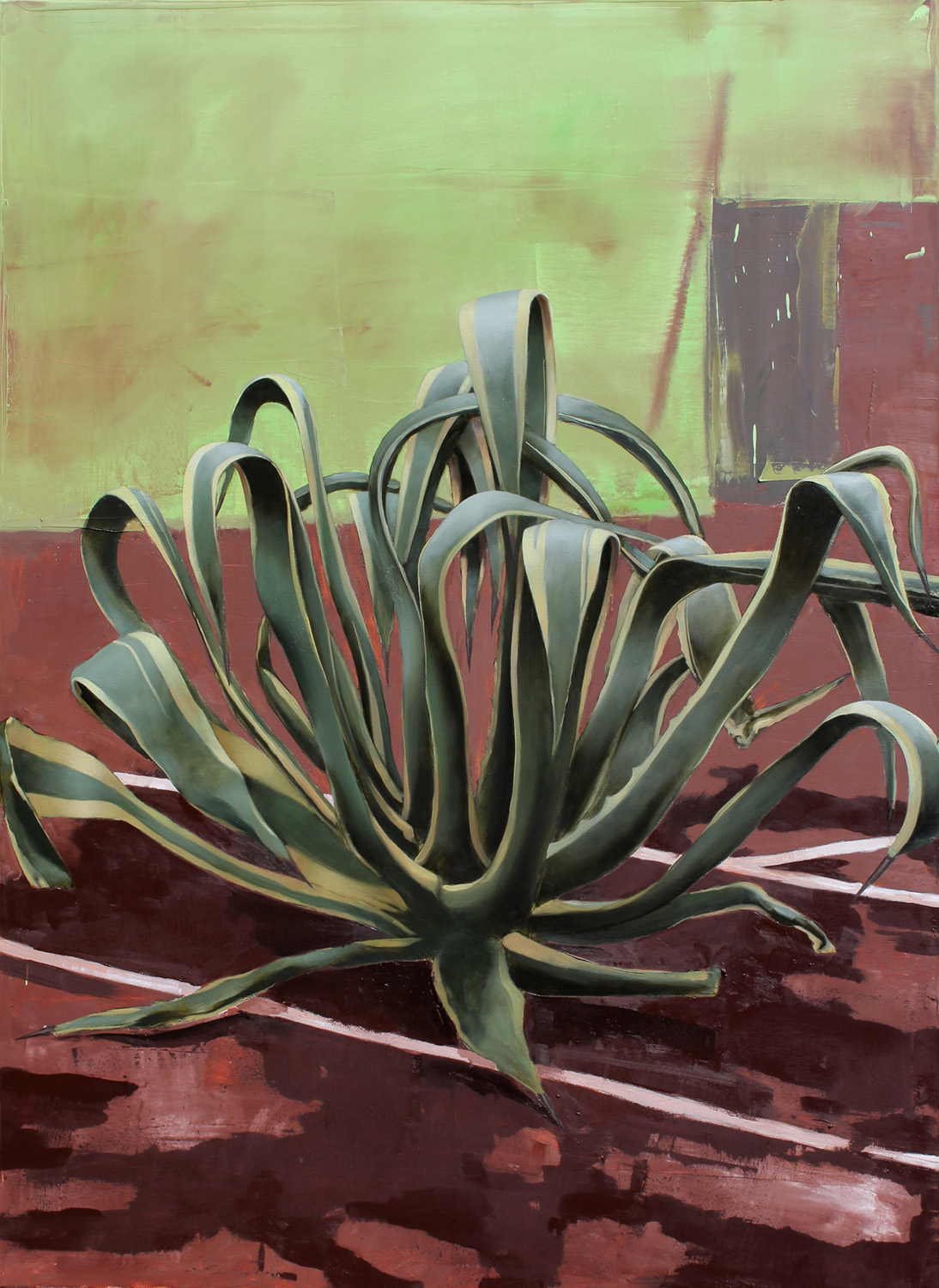 Agave auf verlassenem Tennisplatz, 2022, 165 x 120 cm, Ölfarbe auf Leinwand