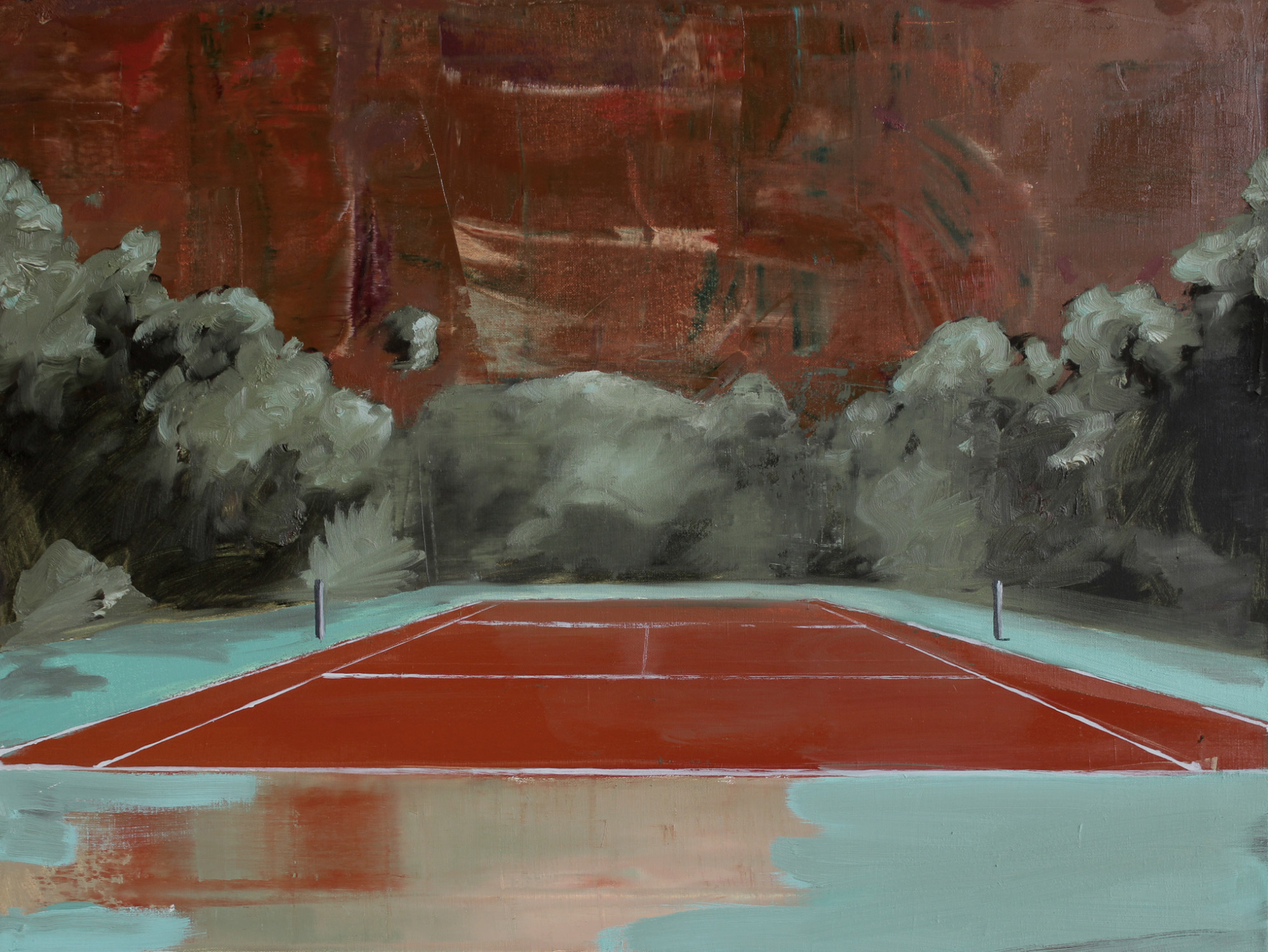 Verlassener Tennisplatz, 2021, 80 x 60 cm, Ölfarbe auf Leinwand