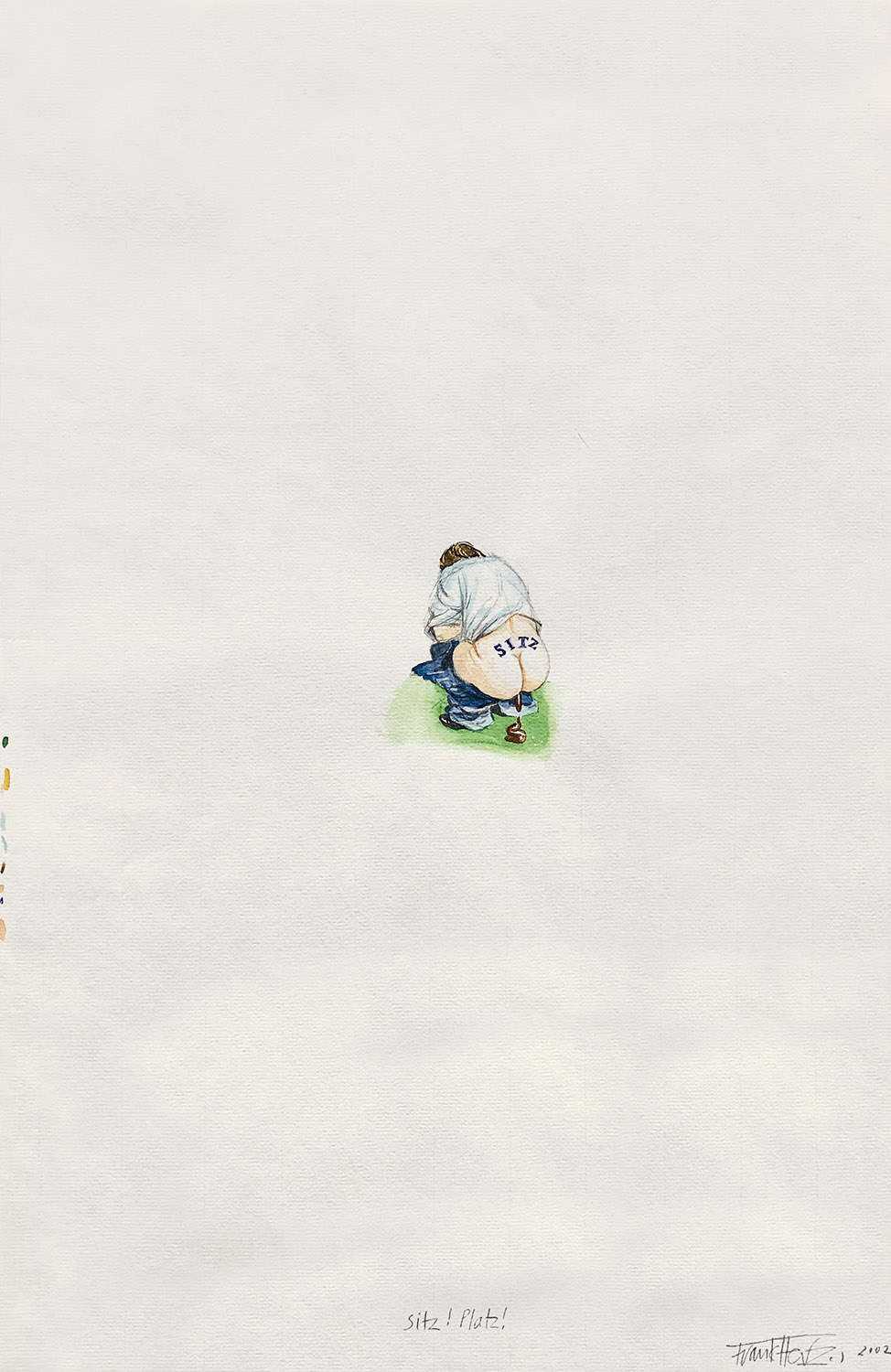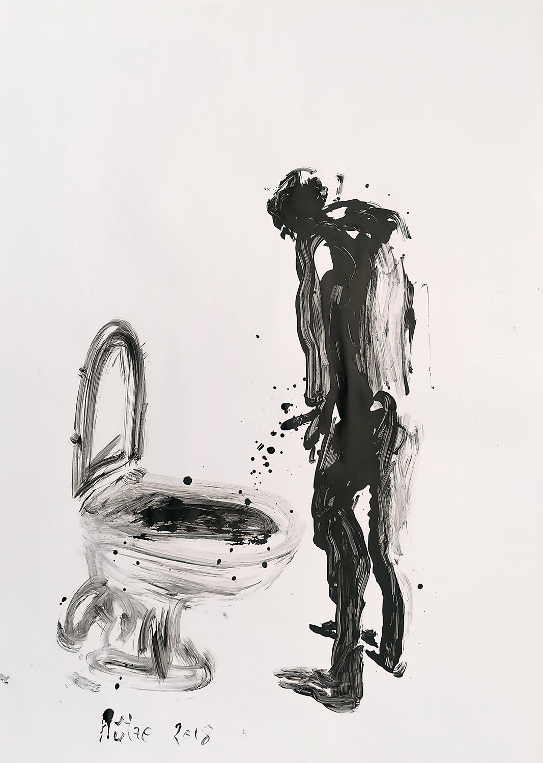 Die Ausstellung »Stilles Örtchen« lüftet mit 31 künstlerischen Positionen den Vorhang vor dem Ort, den alle aufsuchen aber nicht benennen und vor einer Tätigkeit, die überwiegend im Verborgenen stattfindet. Stehend, sitzend, dem Betrachter zu- oder abgewandt, humorvoll und nachdenklich in Malerei, Zeichnung, Objekt und Fotografie, zeigen die Künstler in der Galerie Peter Tedden das tabuisierte Grundbedürfnis des Menschen und reihen sich damit ein, in eine künstlerische und literarische Tradition des Enthüllens des vermeintlich Obszönen als normal, schön, produktiv oder provokativ.