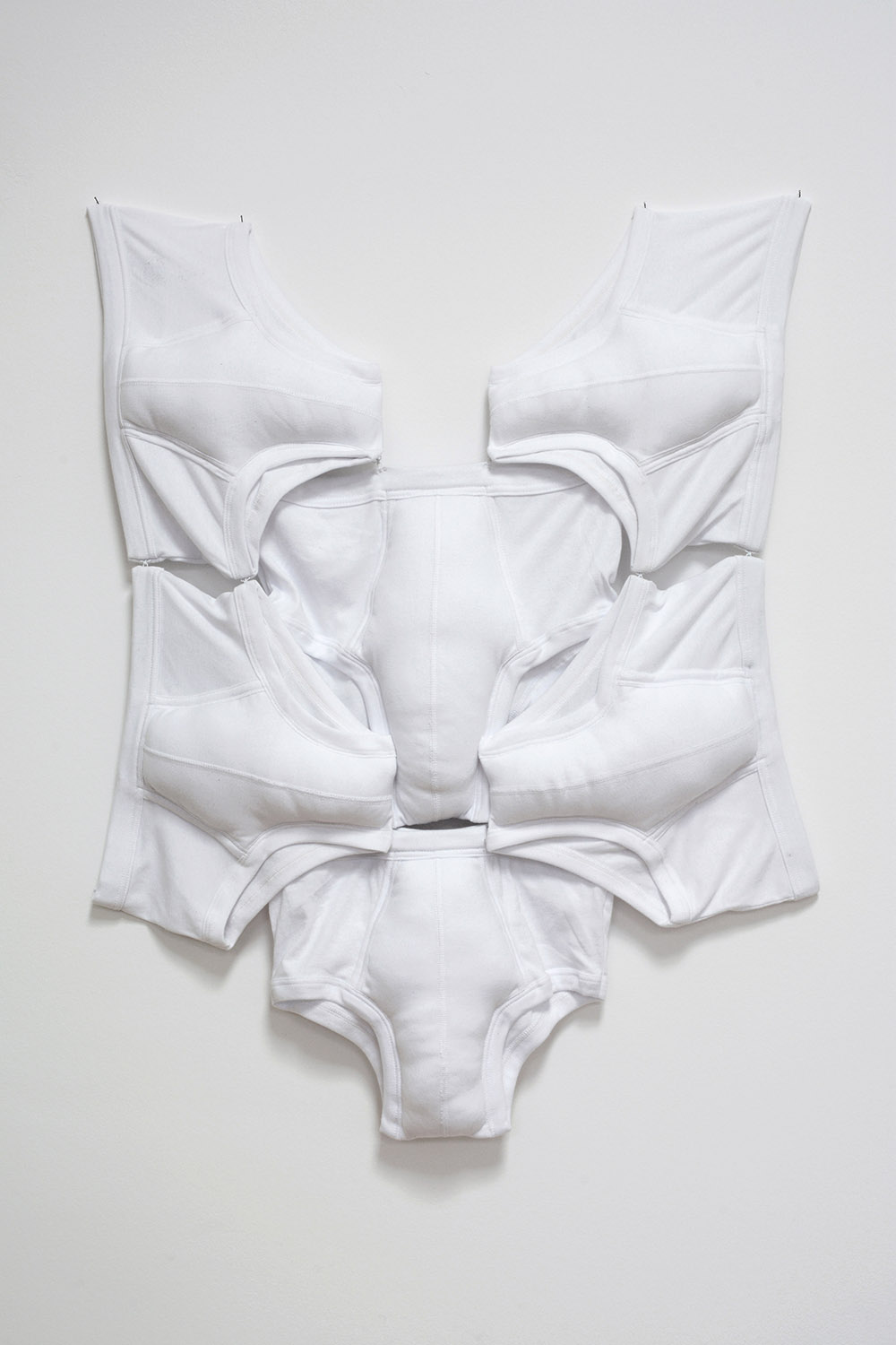 6 Herrenunterhosen, Füllwatte, Haken, Druckknöpfe Wandrelief / Stoffobjekt
